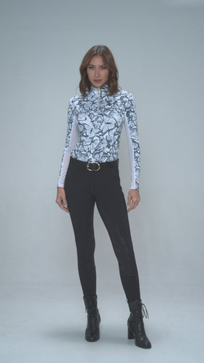 A stylish way to keep cool! Our signature sunshirts are made with buttery-soft fabric and mesh inserts to keep you cool and comfortable all day long. Our light and stretchy fabric is designed for you to move freely throughout the day - on or off the horse.